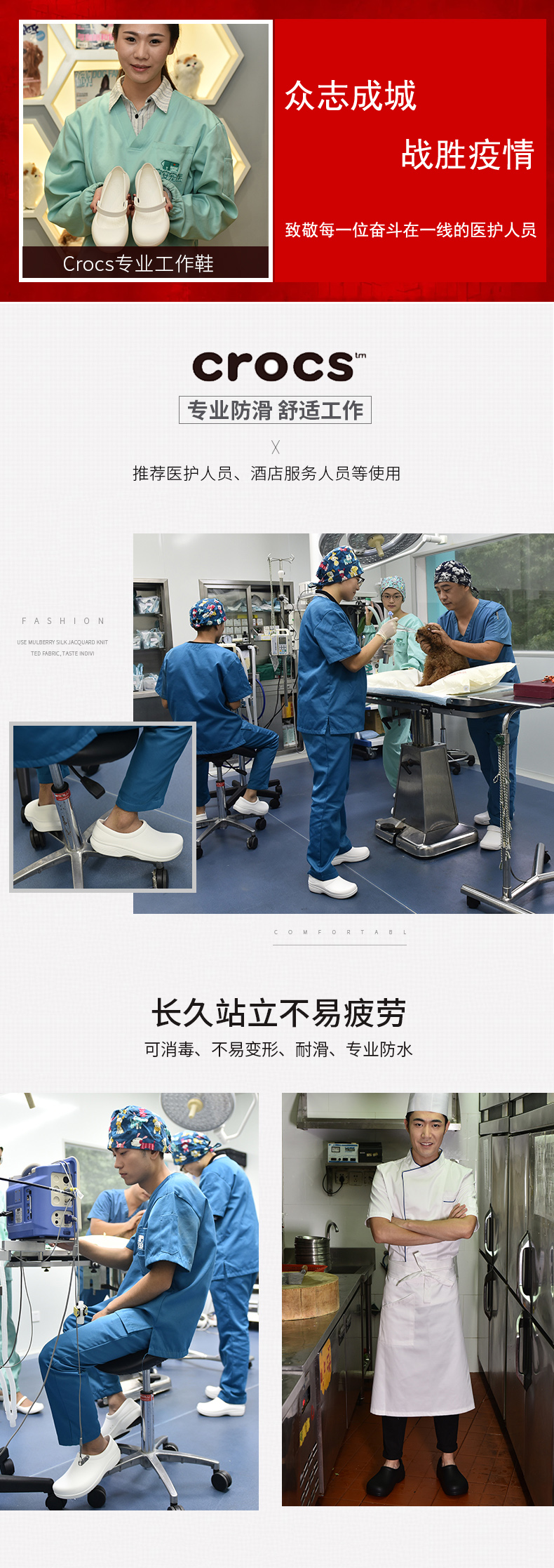 Crocs卡骆驰全包 医生鞋 护士鞋 工作鞋 厨师鞋 职业鞋 克劳科工作鞋On the Clock Slip On
