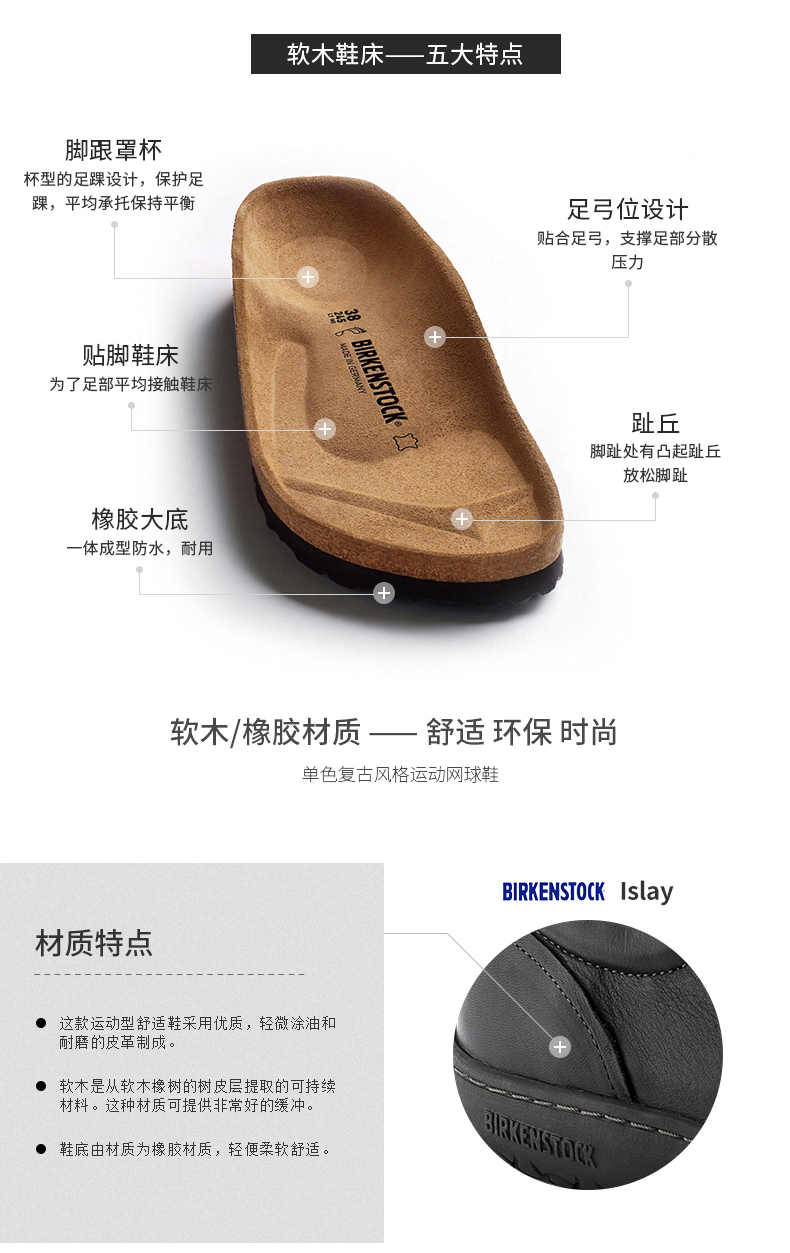 Birkenstock女士牛皮软木中底运动休闲鞋网球鞋Islay休闲鞋