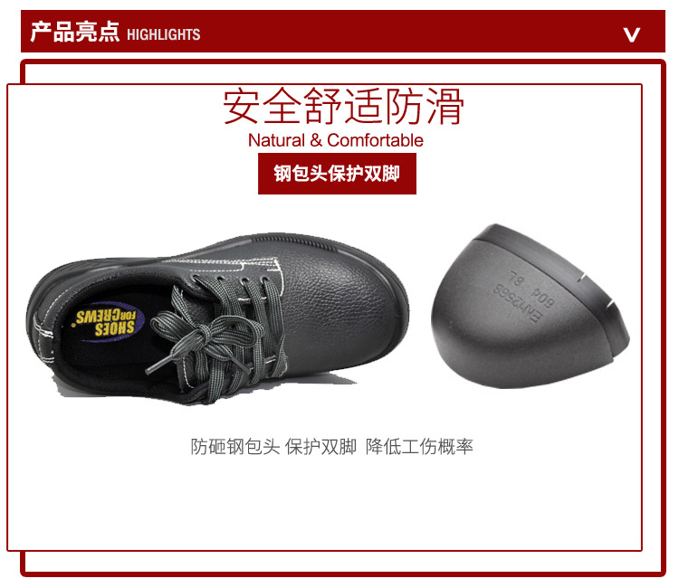 Shoes for Crews专业劳动防护鞋钢包头8601黑色防砸安全鞋职业鞋