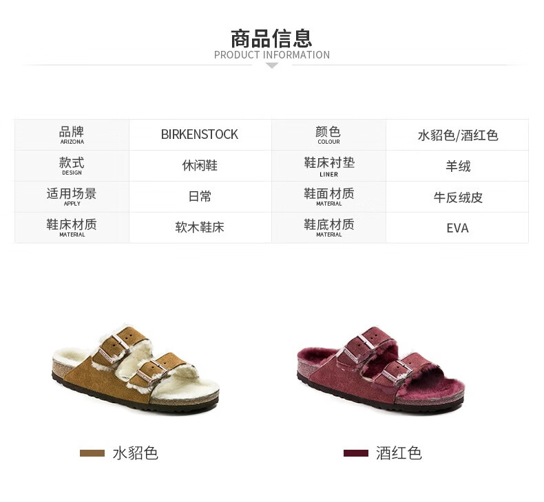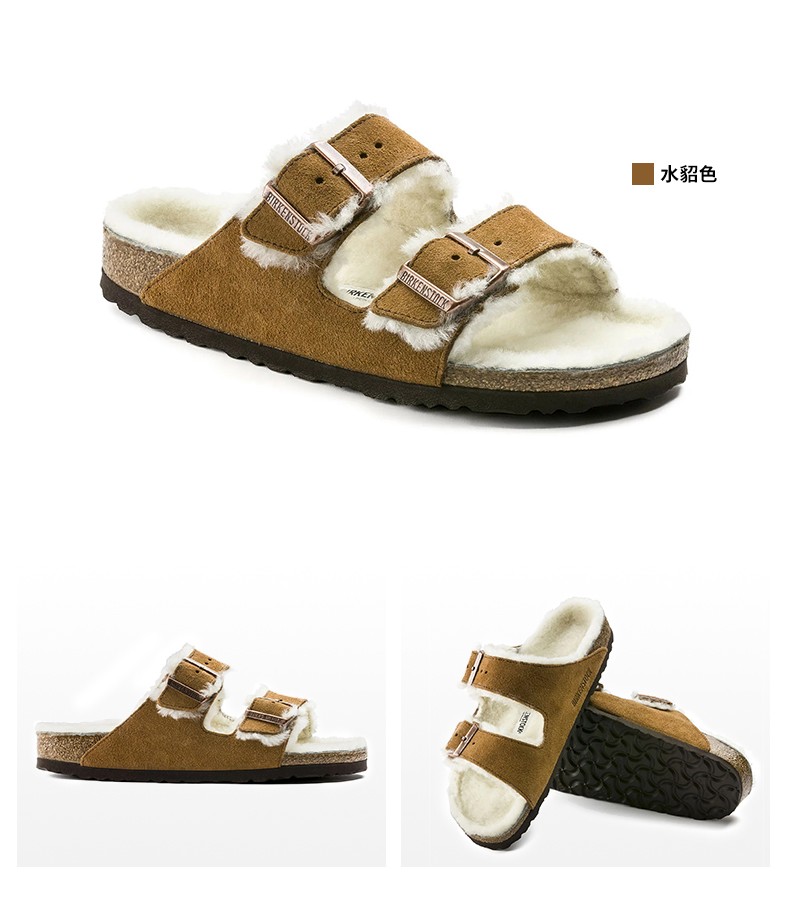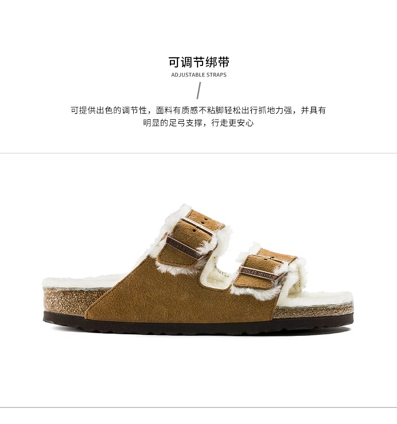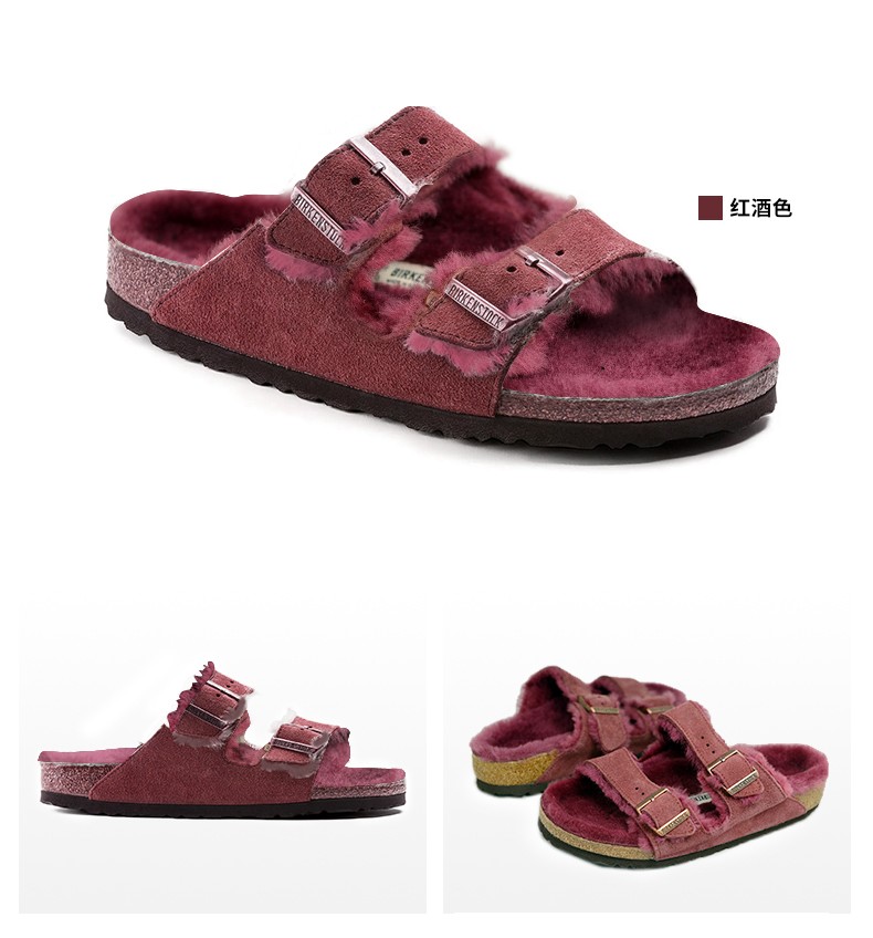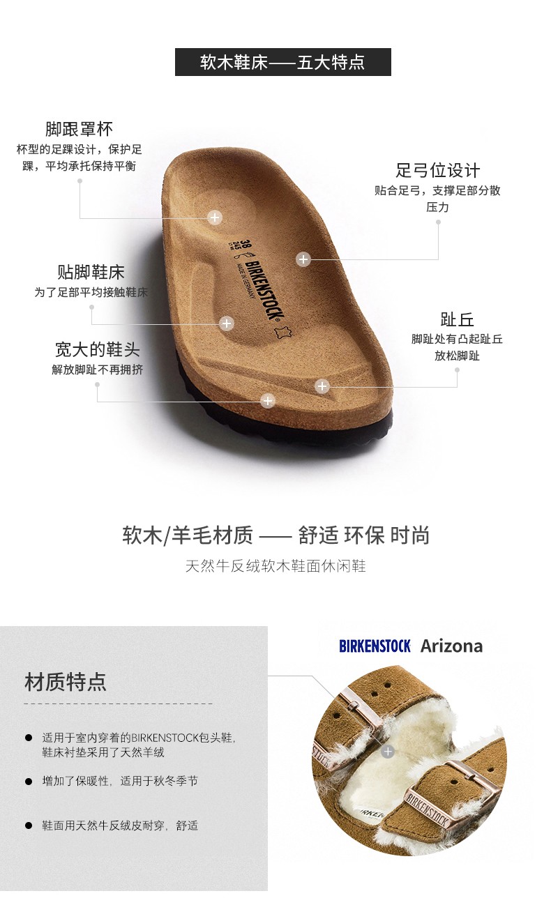 Birkenstock Arizona羊绒鞋床反绒牛皮秋冬毛毛鞋软木拖鞋软木拖鞋