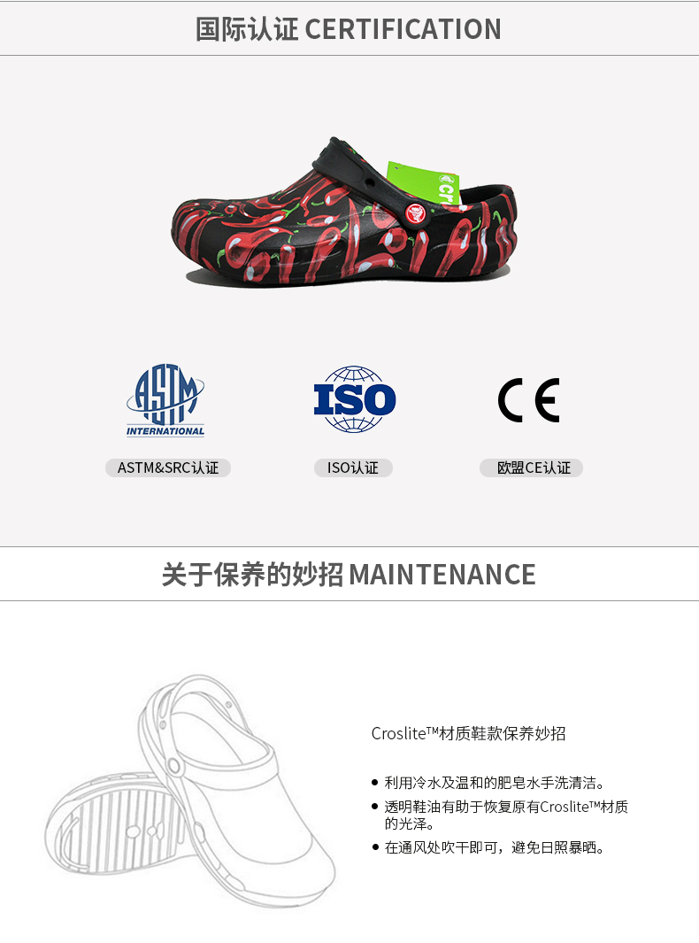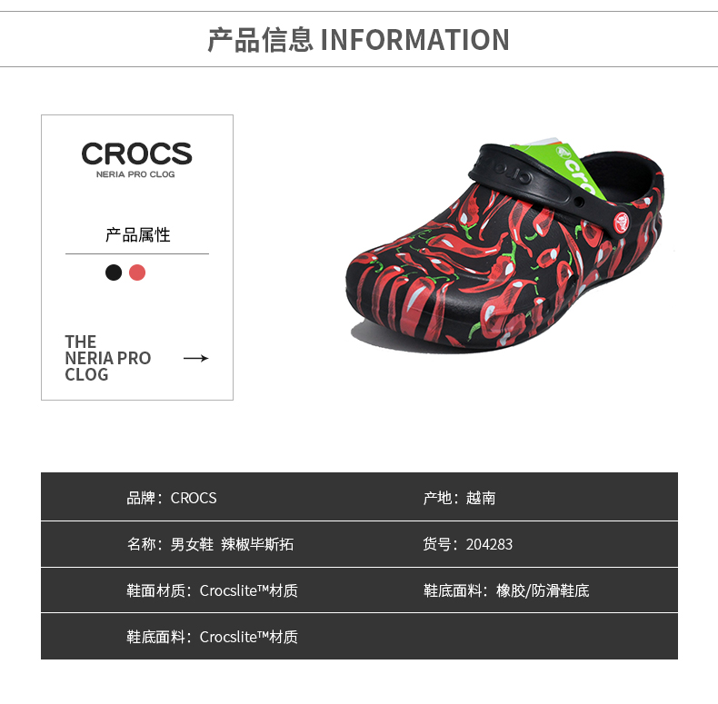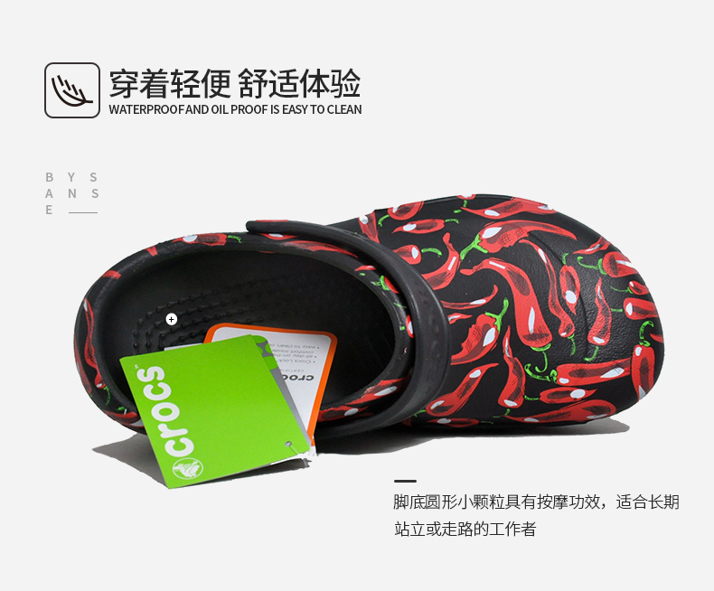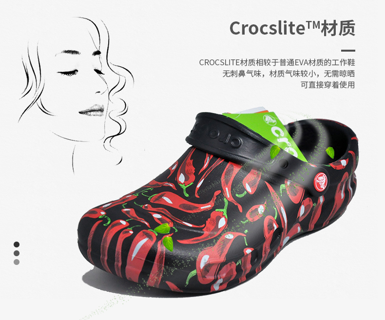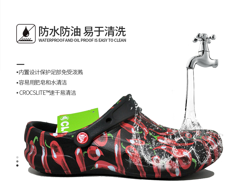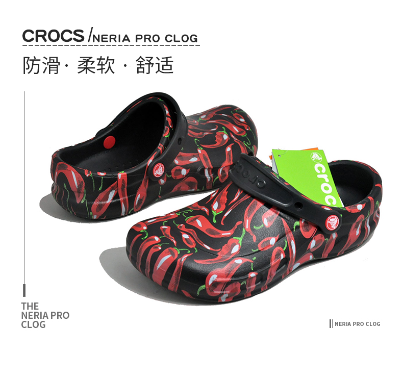 Crocs卡骆驰防滑厨师鞋工作鞋205761辣椒图案