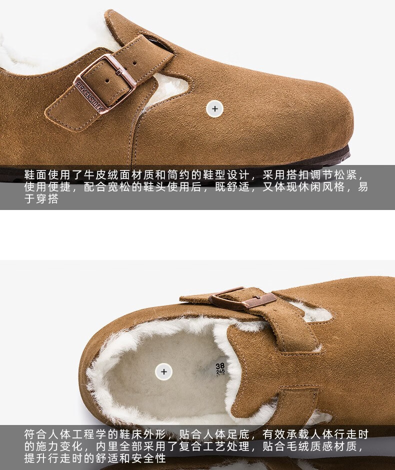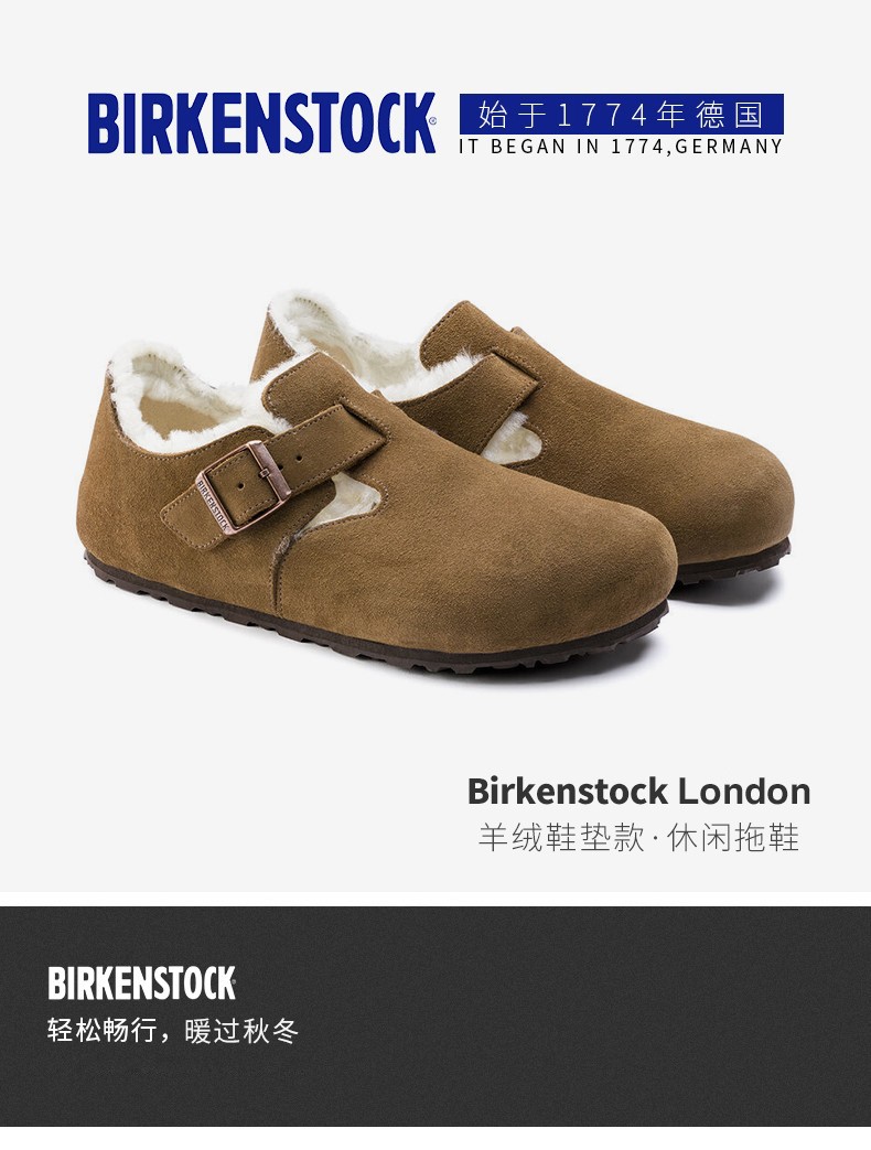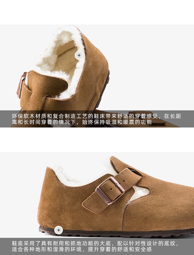 Birkenstock 秋冬男女低帮毛毛鞋软木休闲鞋反毛皮London系列休闲鞋