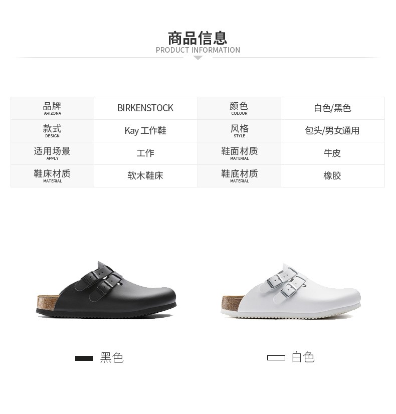 Birkenstock Kay两穿设计牛皮革柔软鞋床防滑专业包头鞋/工作鞋/职业鞋