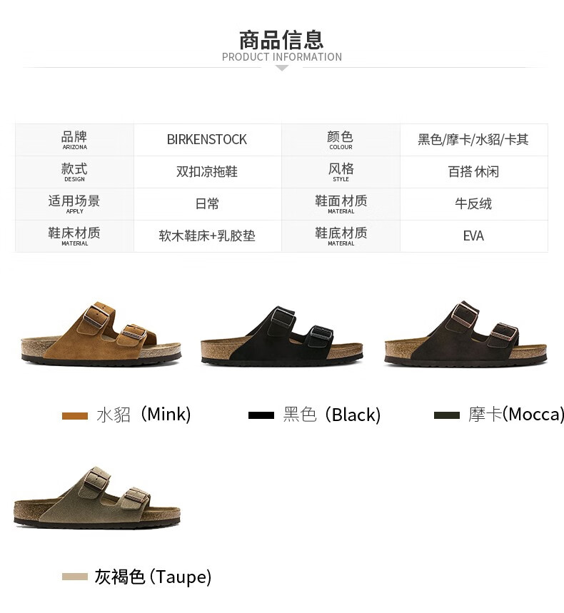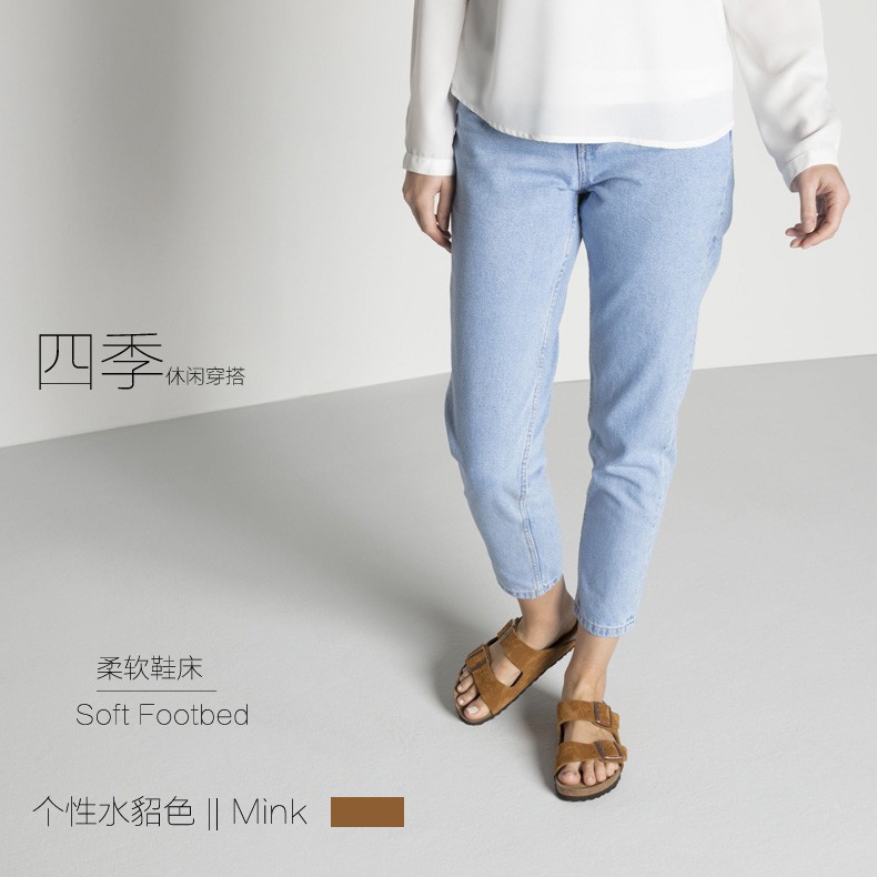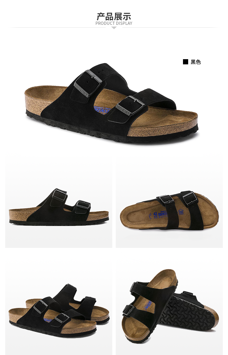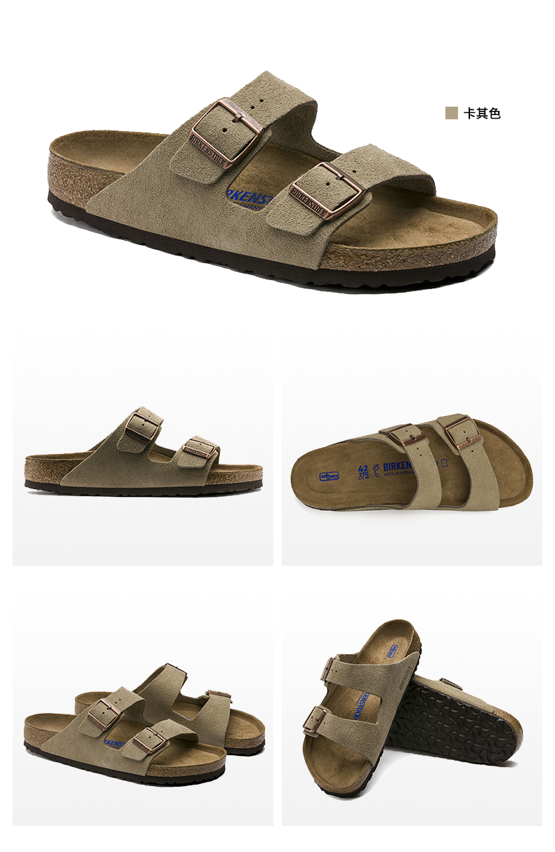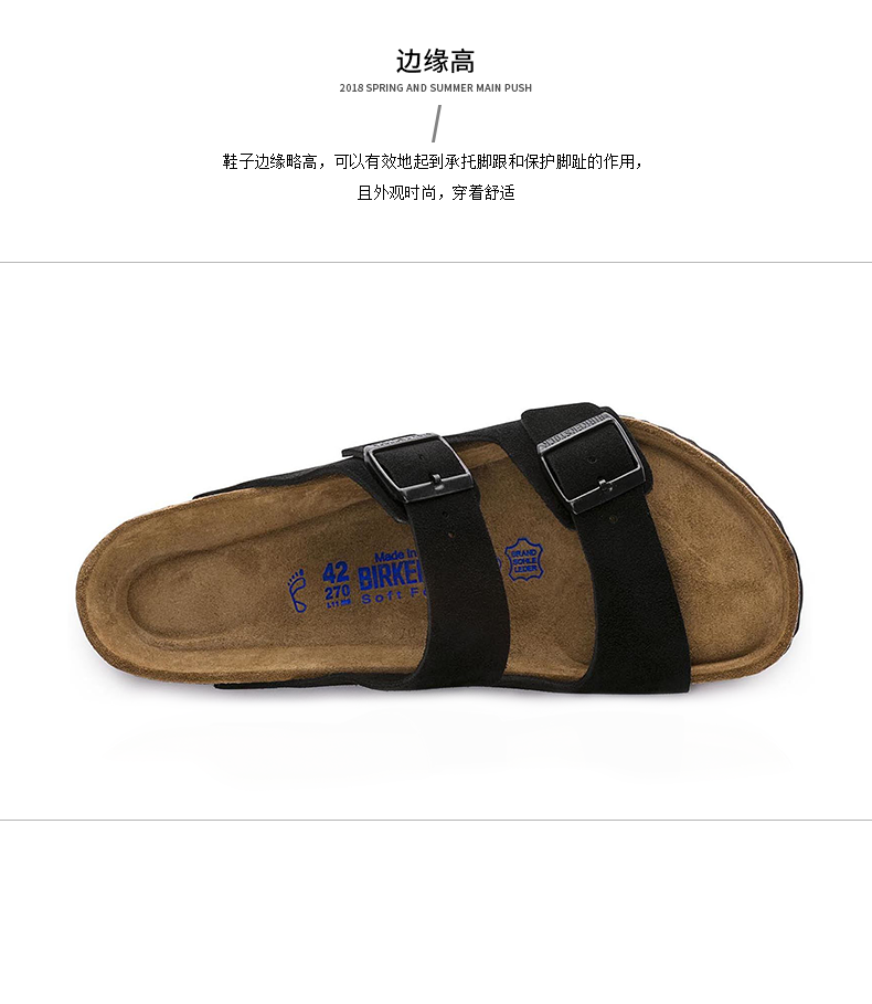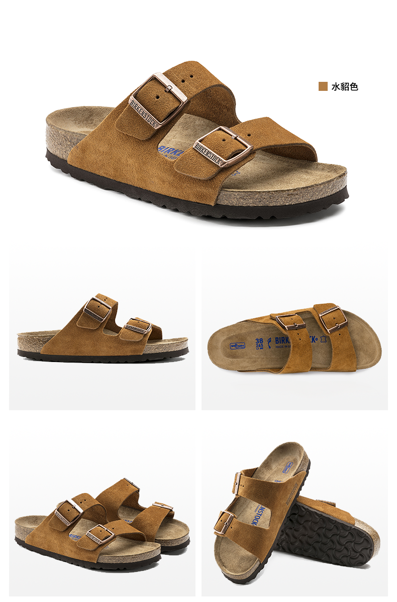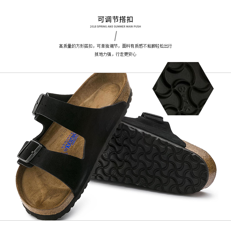 【软底】春夏全新款Birkenstock经典两扣凉拖Arizona牛反绒皮柔软鞋床软木拖鞋