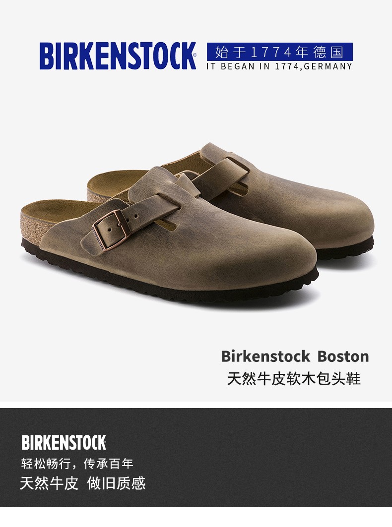 明星同款德国制造Birkenstock/Boston经典包头鞋/油皮/天然牛皮经典款