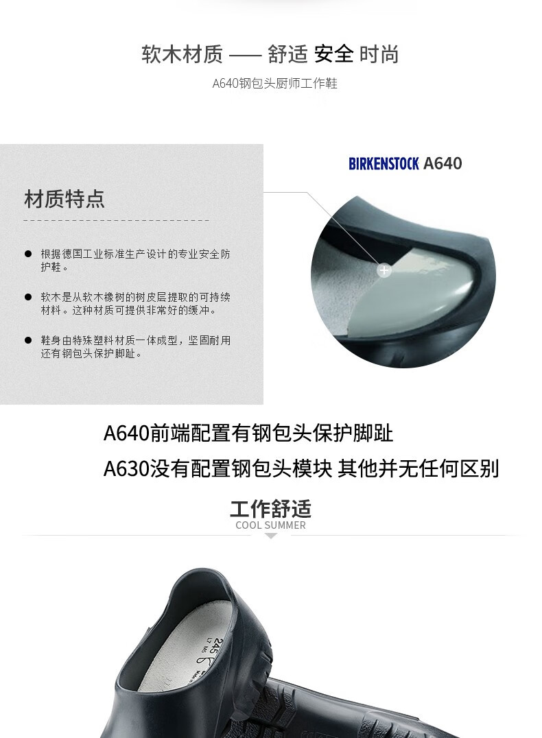 Birkenstock A630 专业厨师鞋/工作防护鞋/职业鞋/劳动保护鞋/安全鞋