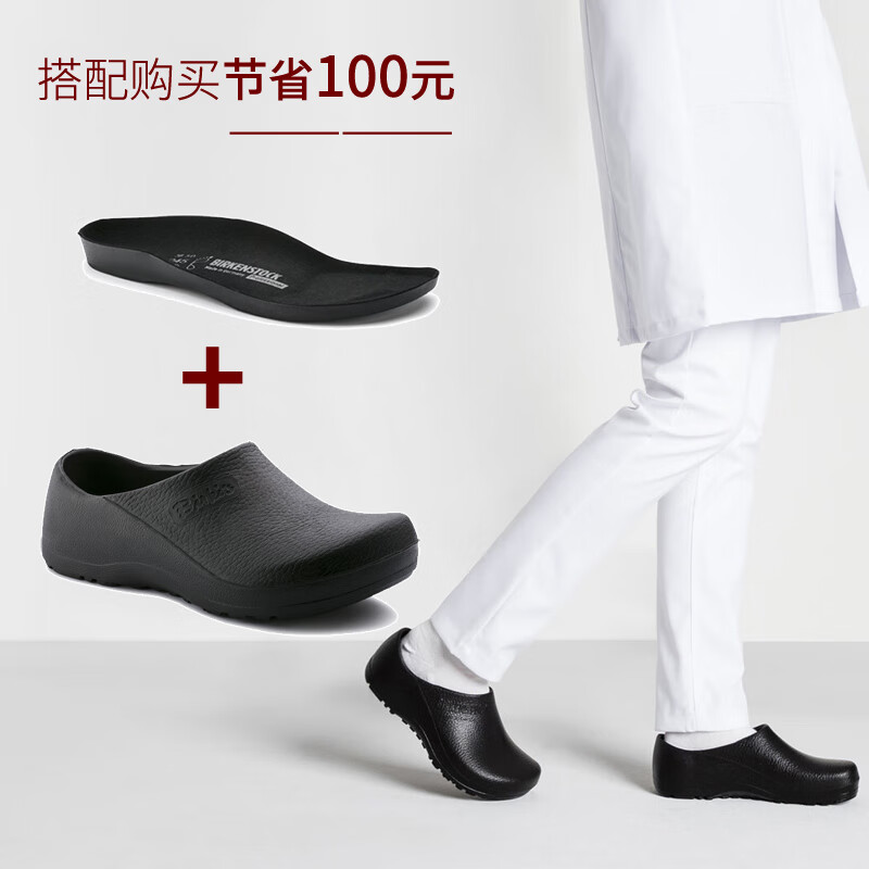 BIRKENSTOCK 74011黑色搭配鞋垫组合套装(ProfiBirki黑色一双+额外原厂PU替换鞋垫一双)