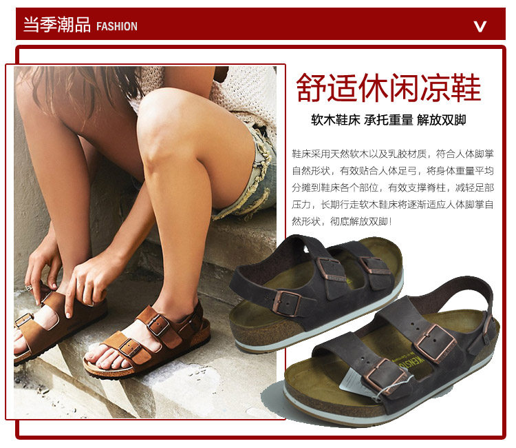 春夏新款Birkenstock/Milano天然真皮流行经典色耐磨橡胶底