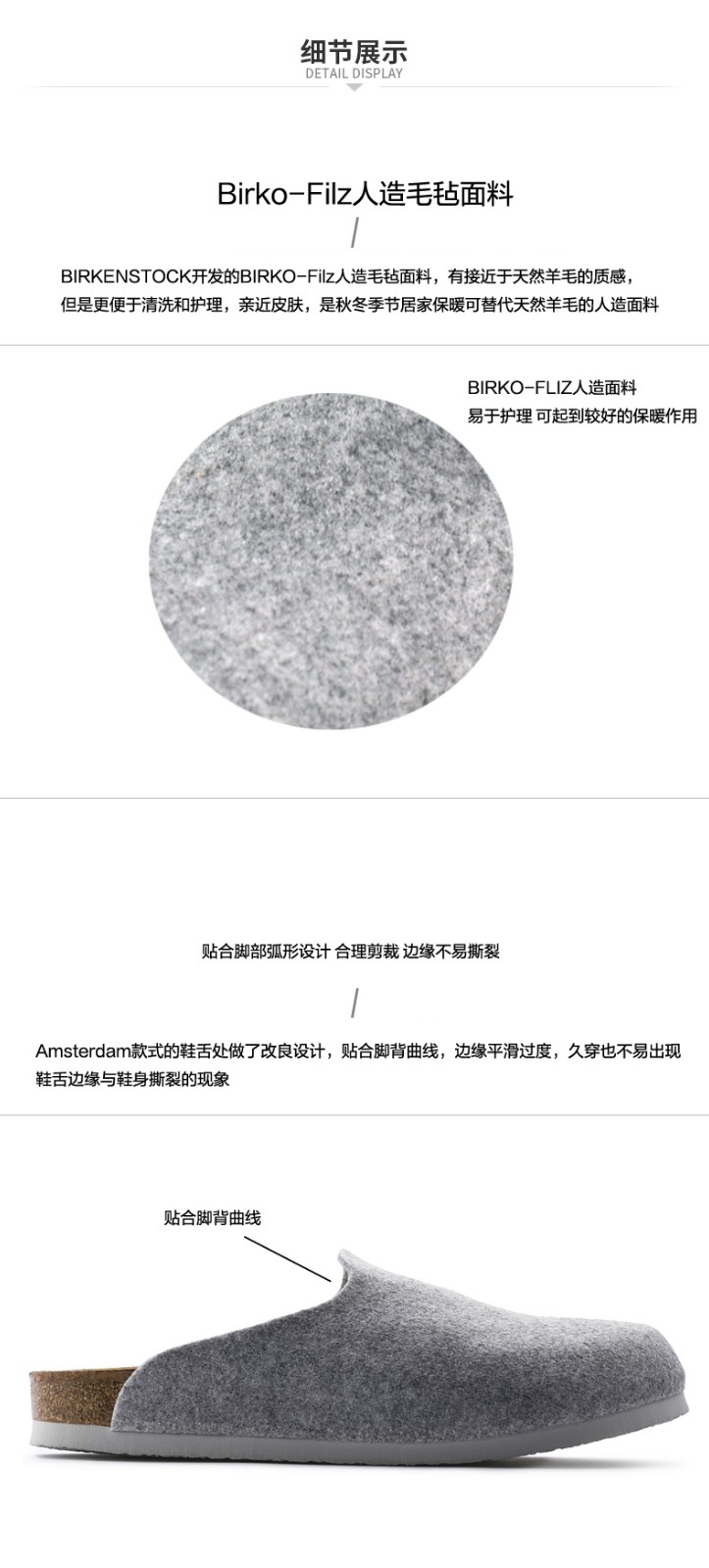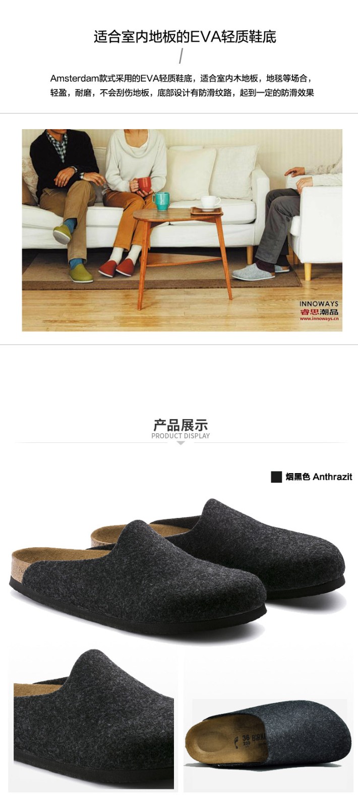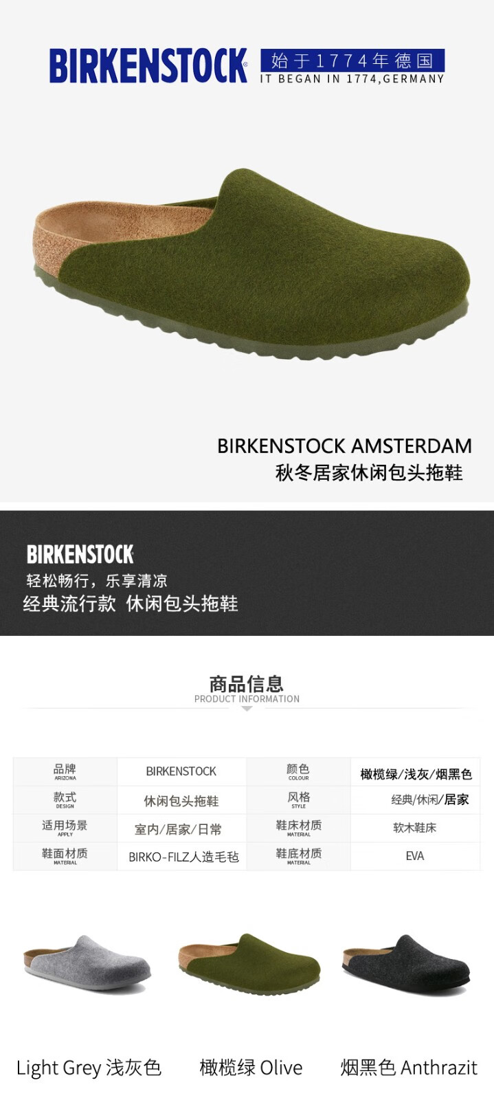 Birkenstock Amsterdam经典毛毡材质舒适包头鞋经典流行色