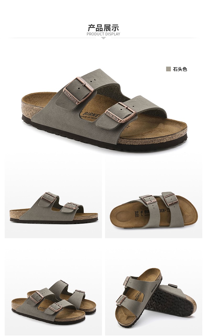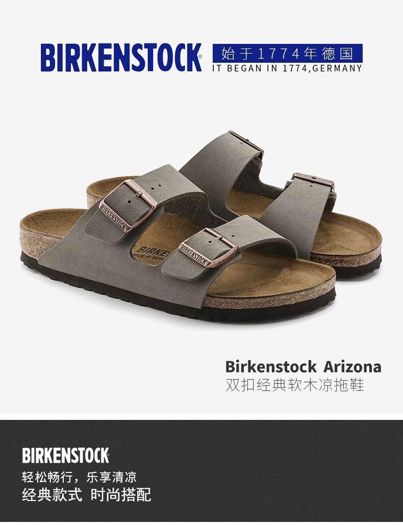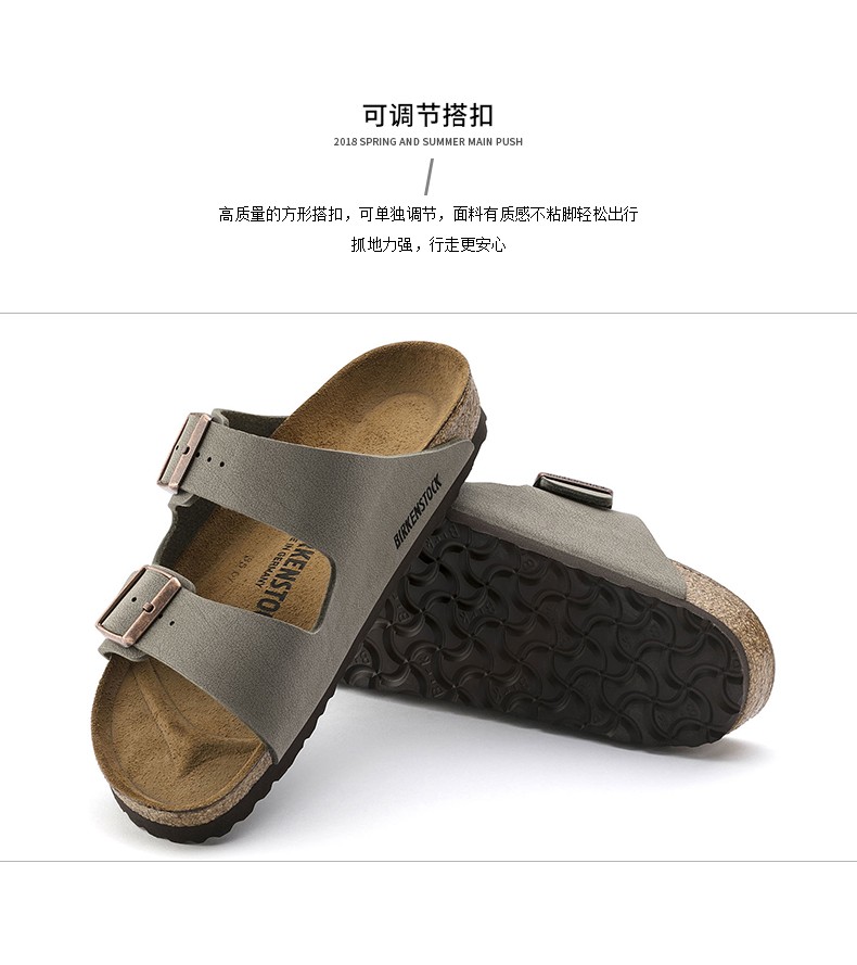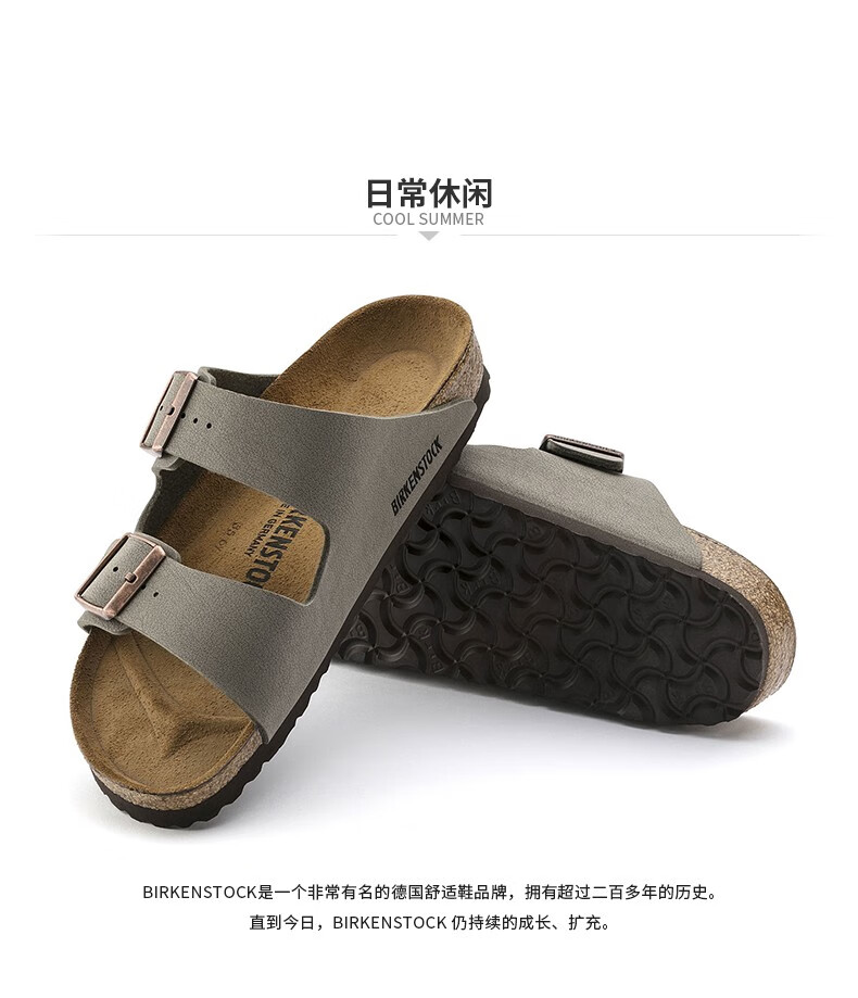 Birkenstock经典软木两扣凉拖鞋Arizona磨砂仿皮软木拖鞋