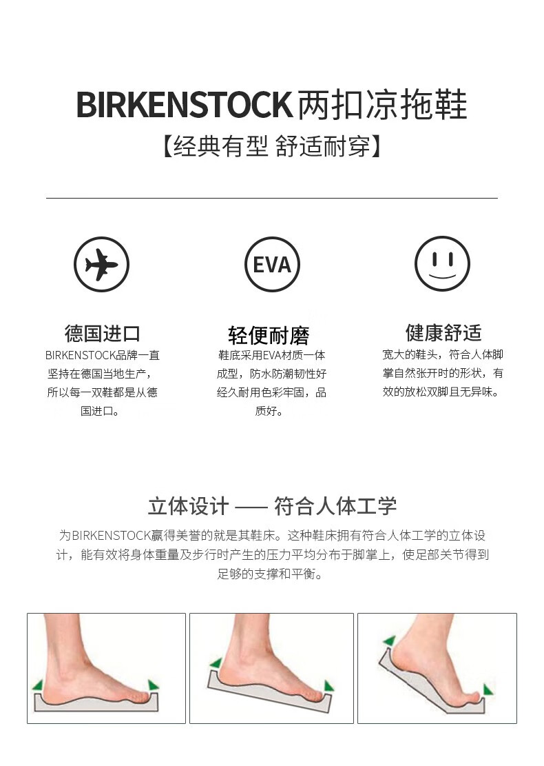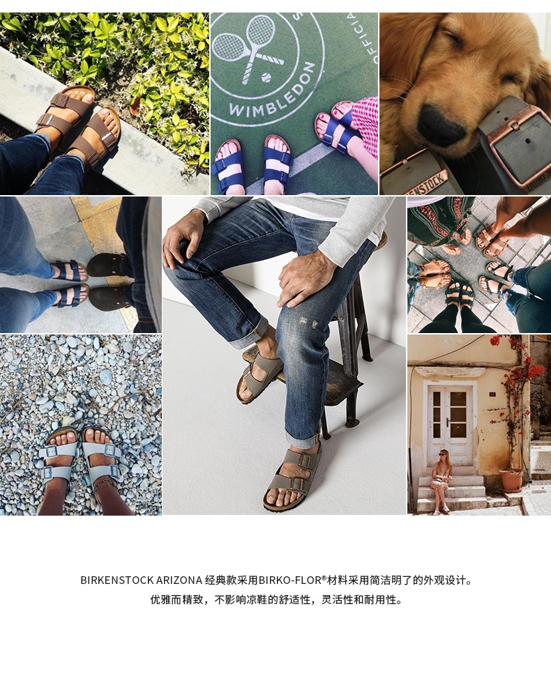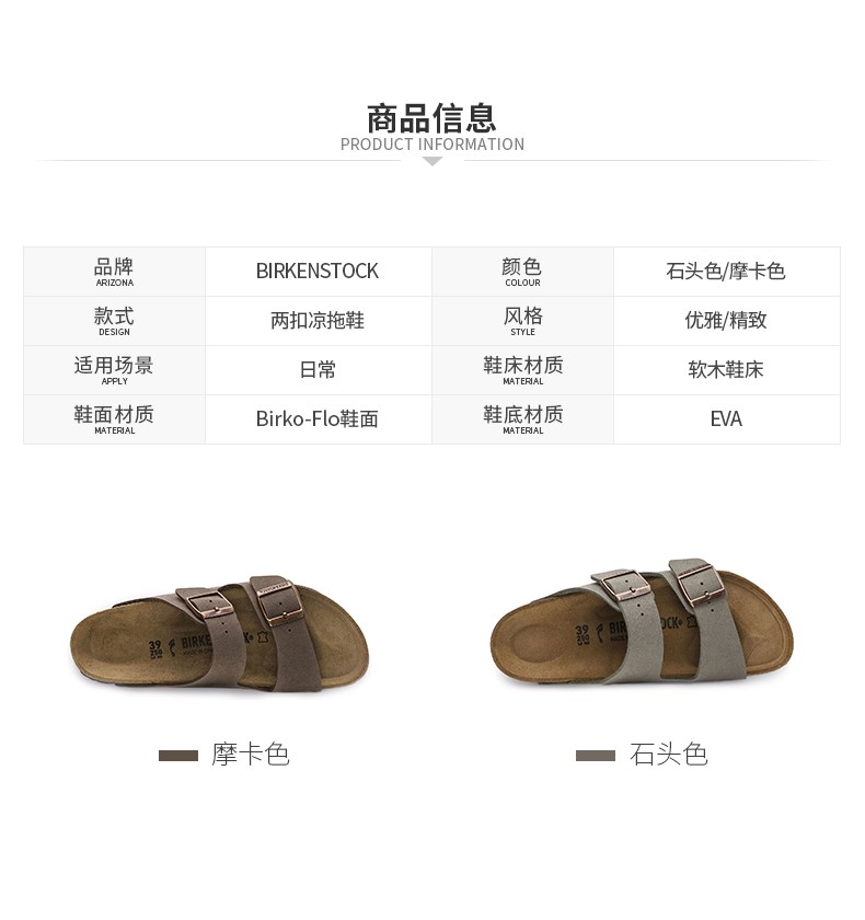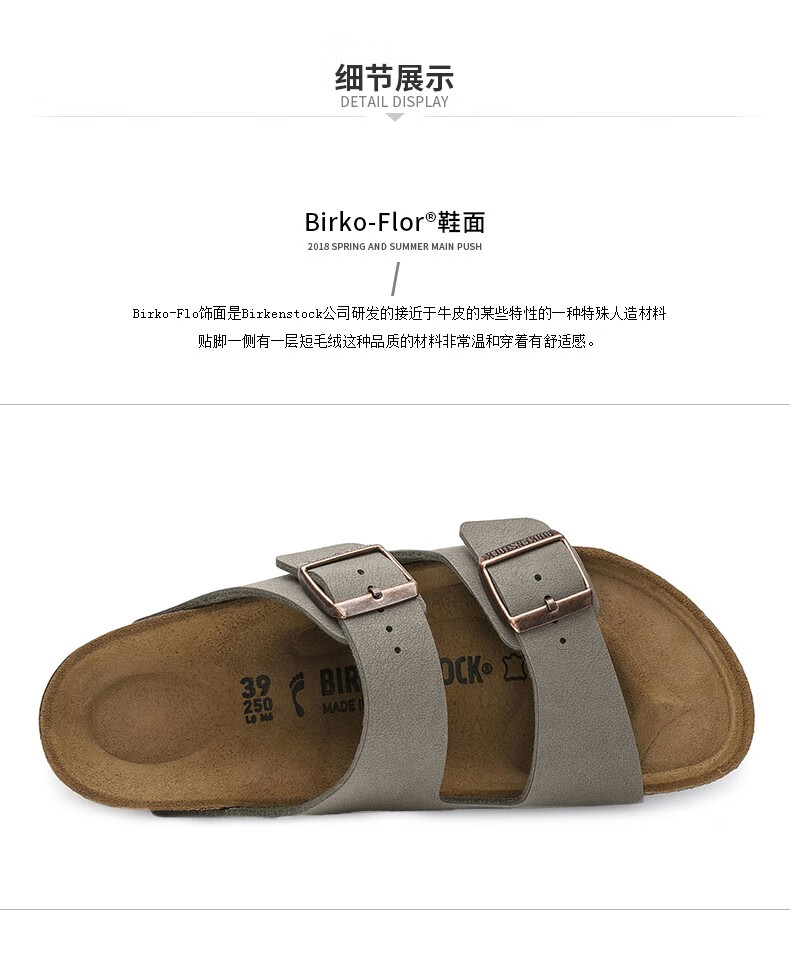 Birkenstock经典软木两扣凉拖鞋Arizona磨砂仿皮软木拖鞋